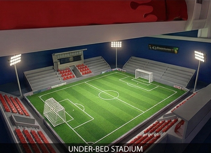 There's also a GINORMOUS TV, a tablet desk, storage for all his football gear, and a special dragon playroom for Toothful. Oh, and Ben made sure the stadium is close to the car park - because when you get home from a long journey, you want to go straight to bed!