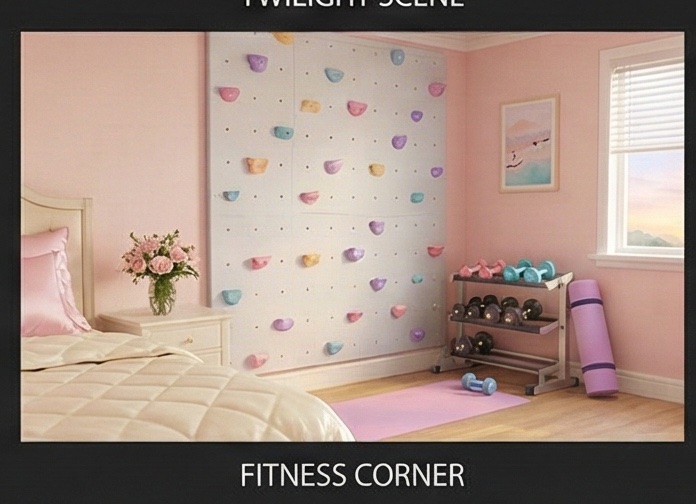 But Rosie isn't just about glamour - there's also a climbing wall and weights area for fitness. And being the best neighbour ever, Rosie has set aside a reserved parking spot outside just for Fergus's flying car bedroom!