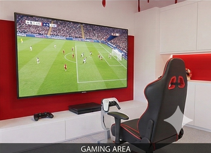 There's also a GINORMOUS TV, a tablet desk, storage for all his football gear, and a special dragon playroom for Toothful. Oh, and Ben made sure the stadium is close to the car park - because when you get home from a long journey, you want to go straight to bed!